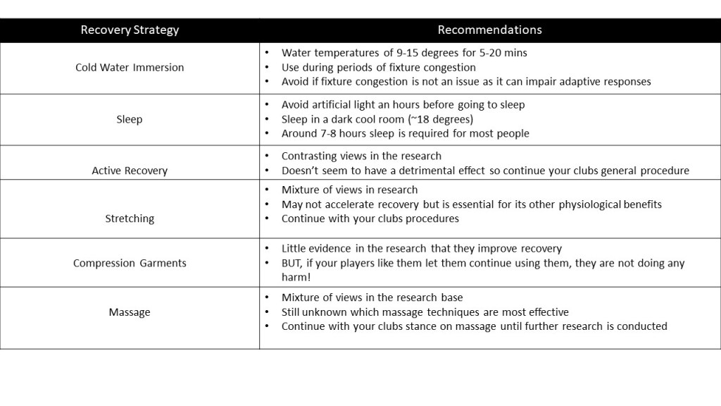 Making sure you training is challenging for your players is one aspect, but you ensure they are fully recovered and ready for the next session is arguably more important! A recovery strategy involves the implementation of a technique that accelerates the time to full recovery or reduces the risk of injury (Dupont et al., 2010). There are many ways that football clubs use to try and ensure quick and full recovery of their players, so let’s have a look!